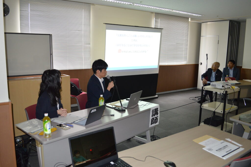 県内各地から透析患者ら災害弱者と言われる方々と家族ら25名が出席しました。県災害対策課の吉田浩一郎さんが「要支援者の災害対策」、県保健福祉総務課の大内智子さんが「福祉避難所について」、県腎協副会長の長谷川裕さんが「透析患者の災害対策について」の演題で講演しました。