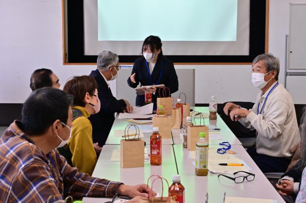 この後、二班に分かれて、透析初心者を中心にした懇談会を開き、透析の悩みについて話し合いました。初心者からは「果物が好きだが、カリウム値の上昇が心配」など様々な質問が相次ぎ、蛭田さんや透析のベテランが丁寧に答えていました。